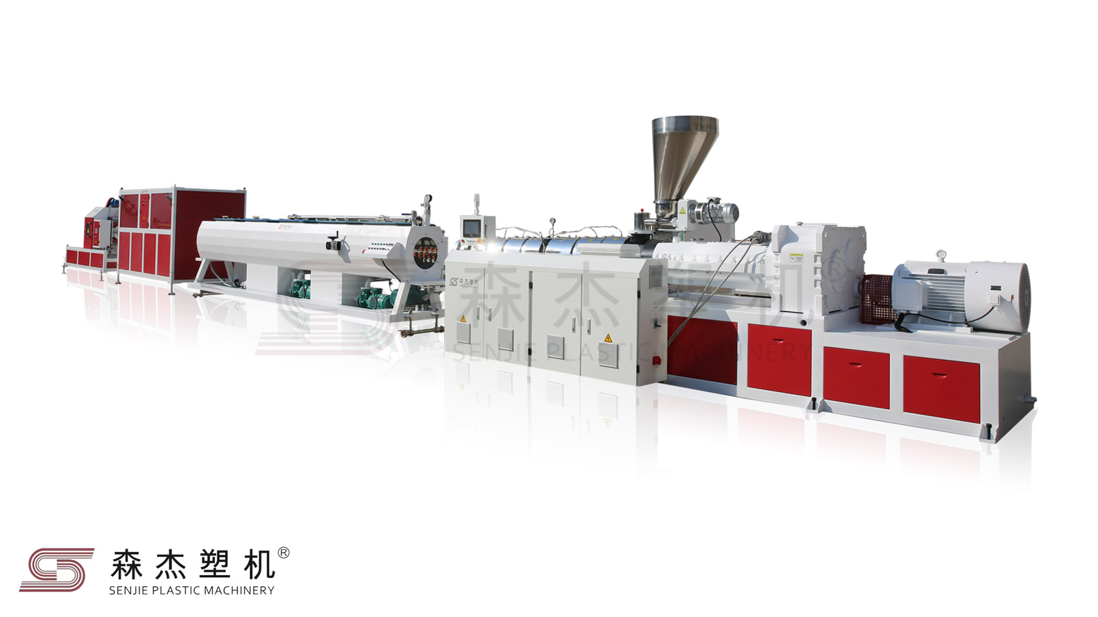 PVC管材生產線可用于生產各類給水管,排水管,電力管。擠出機有SJSZ錐形雙螺桿擠出機,牽引機有履帶式,二爪,三爪,四爪,六爪,切割機有抬刀及行星切割機以及料架。