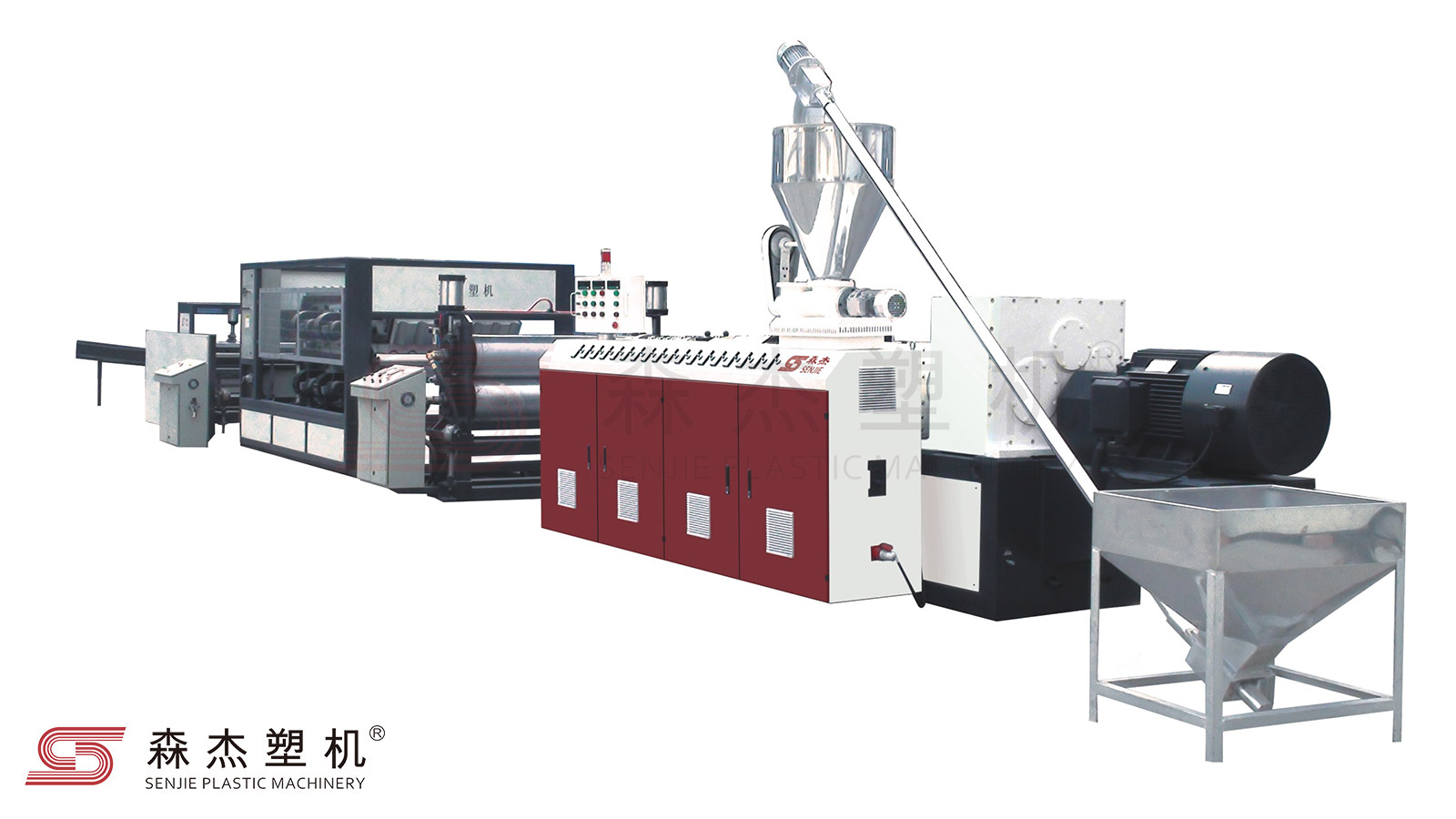 該設備有錐形雙螺桿主機,共擠機,表面壓花機,可調式分配器,衣架式平板模具,兩輥壓輥機,琉璃瓦成型機,跟蹤切割機, 接料架組成, 可連續(xù)生產PVC單層及PVC/ASA復合塑料琉璃瓦。整條線具有生產效率高,結構合理緊湊,使用維護方便,壽命長等優(yōu)點。